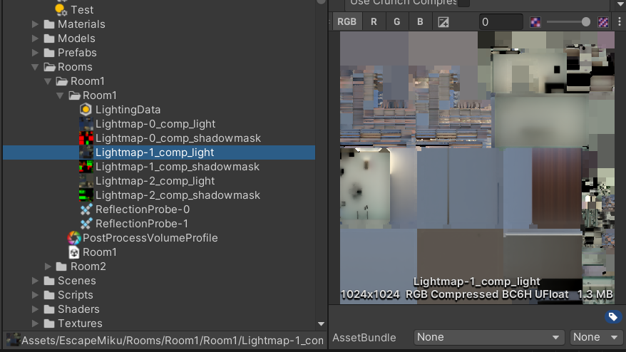 また、ライトマップを焼いたあとで、焼かれたライトマップテクスチャのインポート設定を変更することで容量を調整することもできます。