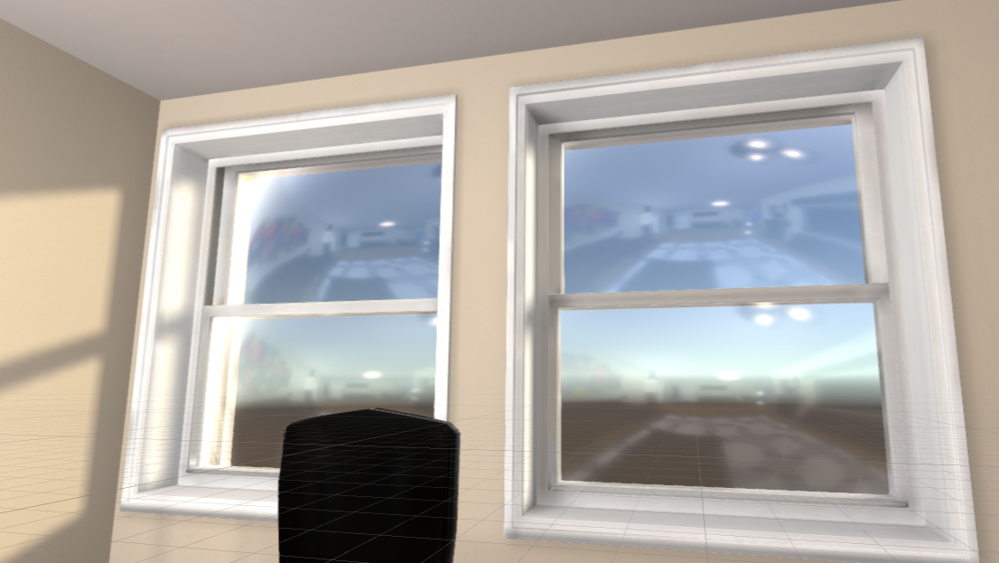 デフォルト設定だと、壁や天井で囲まれた室内にも空の色が落ちて青く照らされてしまいます。Reflection Probeを設置してBox Projectionをオンにし、部屋の形にあわせてサイズを調整してください。