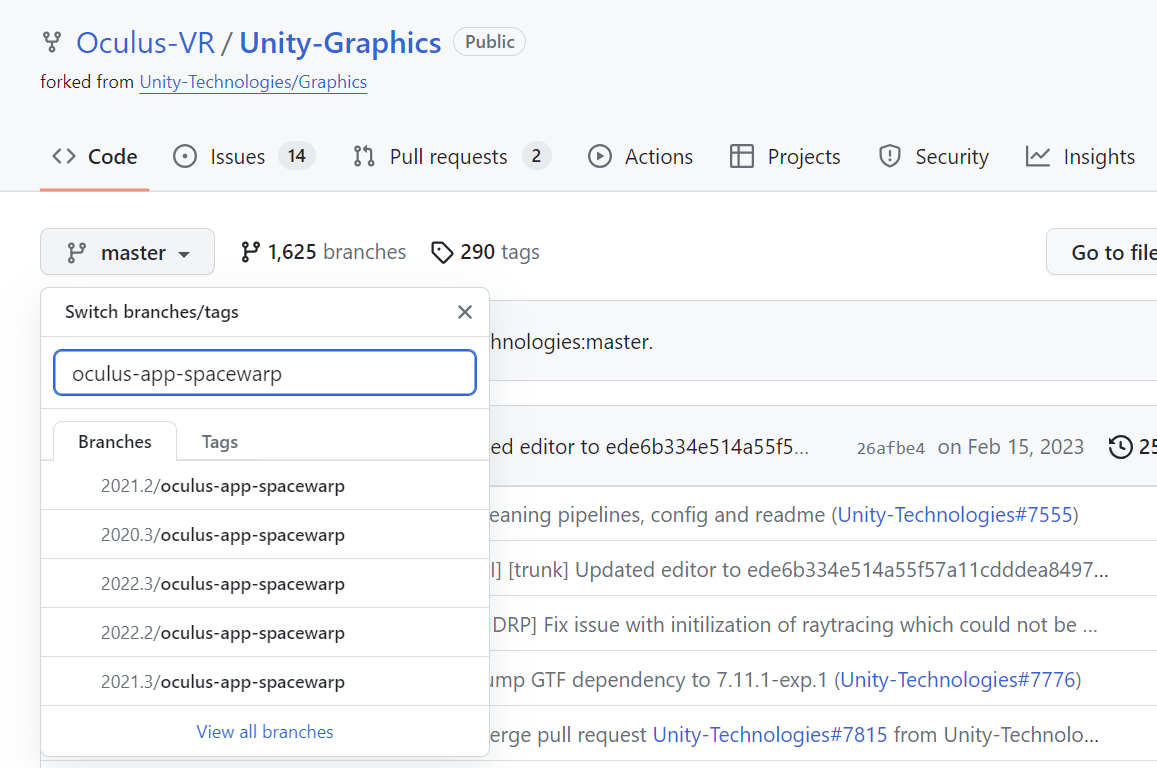 - Oculus XR Pluginを3.2.3(以上)に上げる