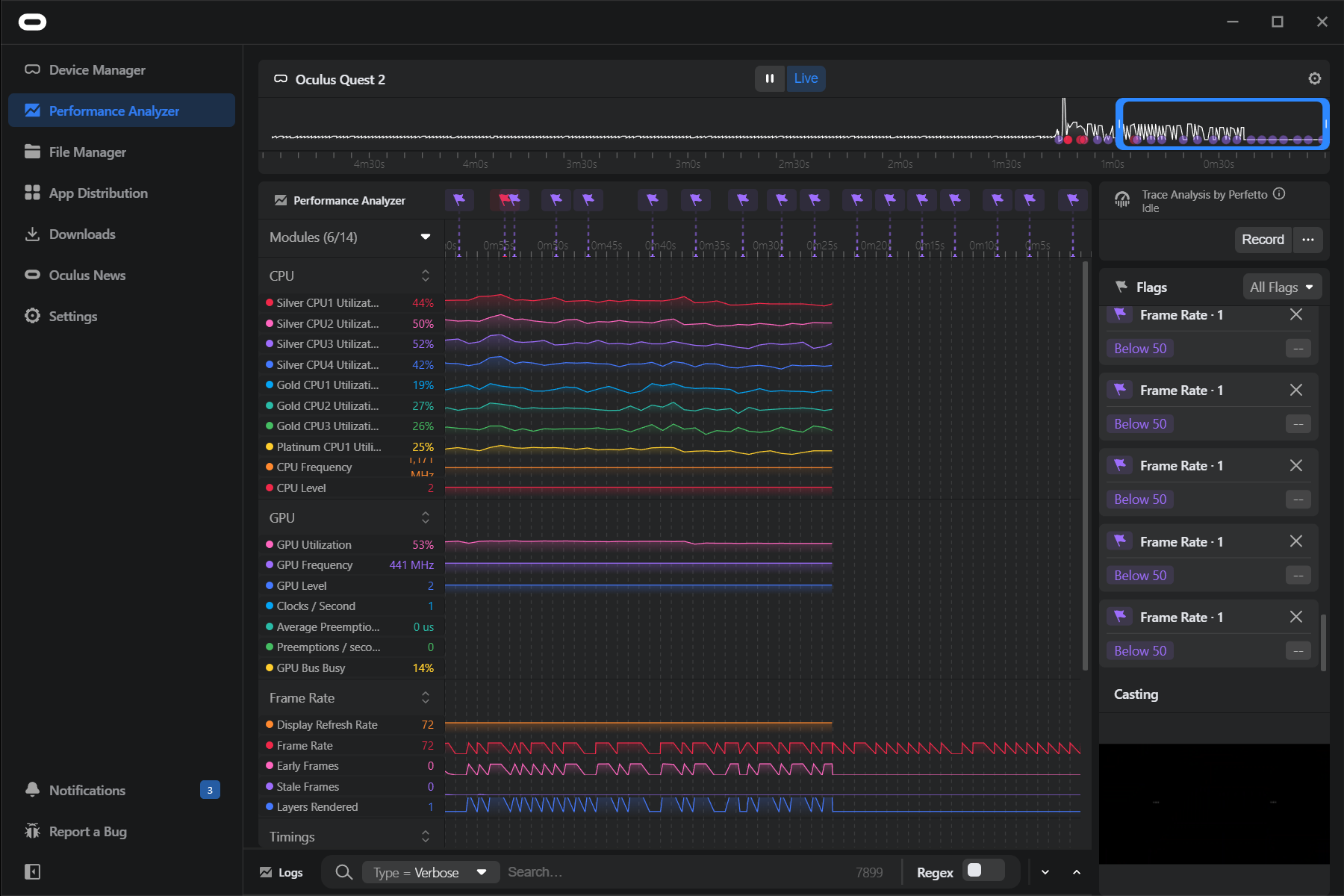 Meta Quest Developer Hubという開発用のポータルツールが提供されています。ヘッドセット内の映像の中継表示や、ガーディアンや近接センサーの無効化、アプリの起動やアンインストール、Quest Linkの起動、Metaが提供するツールのダウンロード、ダッシュボードへのアプリのアップロード等が簡単にできるようになっていますので、インストールしておくと便利です。