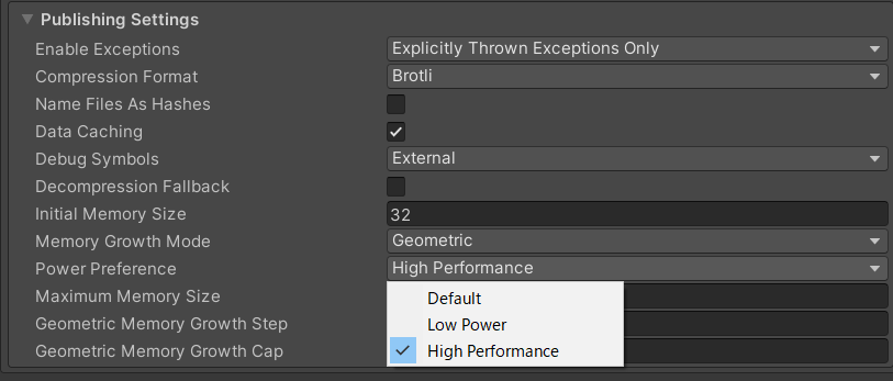 PlayerSettings.WebGL.decompressionFallback = false;