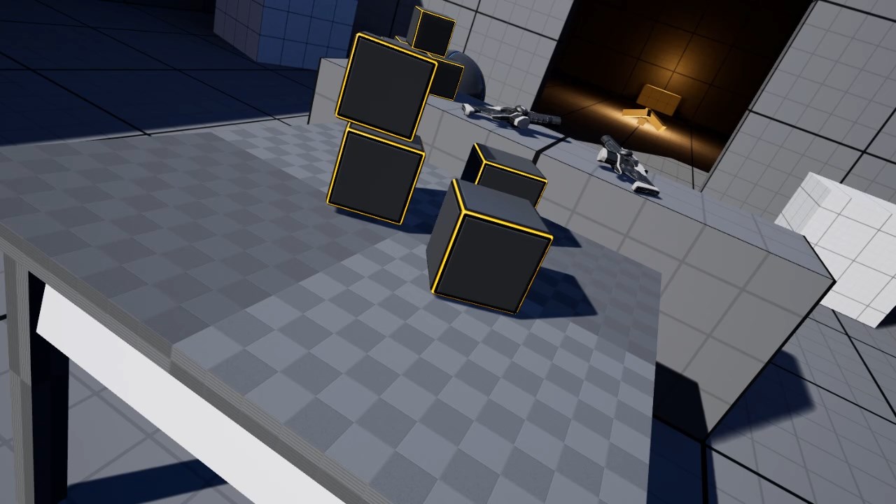 また、観客カメラが用意されています(レベルのBP_VRSpectator)。実行中にTabキーを押すと観客カメラに切り替わり、WASD/QEキー等で移動できます(ヘッドセットは主観カメラのままです)。